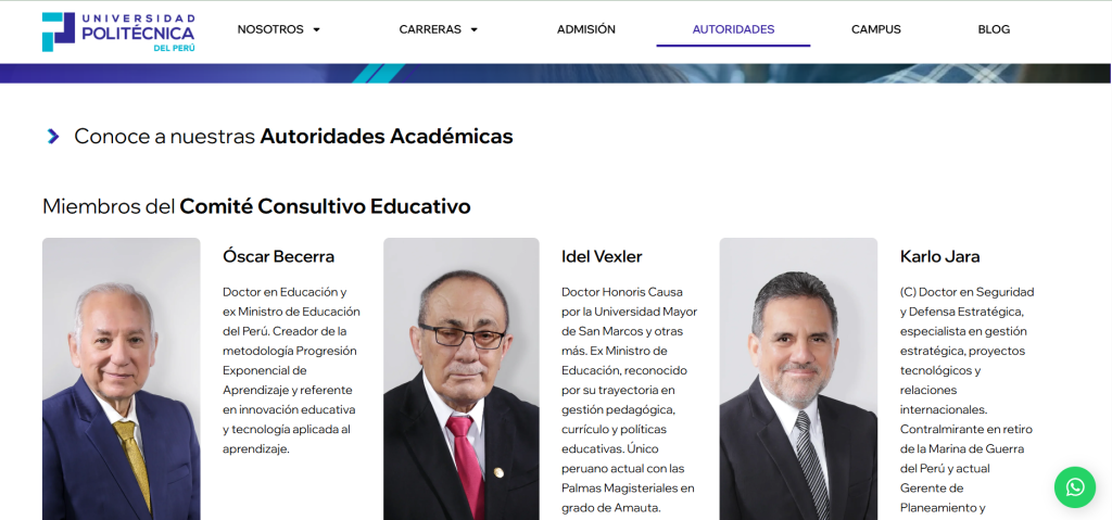 Ahora, revisando nomás en la página de la Universidad Politécnica del Perú, encontramos que los miembros del Comité Consultivo son el exministro Oscar Becerra, ojo, el que tuvo expresiones racistas contra las mujeres indígenas que llegaron a Lima para las protestas contra el régimen de Dina Boluarte. Algo que sus seguidoras y seguidores de La Chismería -programa creado con el apoyo de la organización feminista Manuela Ramos según informan las conductoras- podrían cuestionar por ser un personaje claramente machista, misógino y racista. Está también Idex Vexler, exministro aprista, íntimo de Alan García.